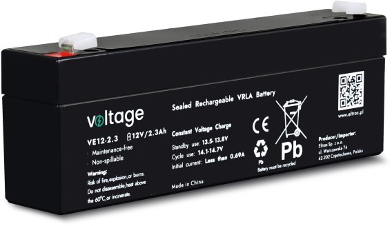 Akumulator AGM Voltage 12V 2.3Ah VE12-2.3 (Żywotność 6-9 lat) - najważniejsze cechy: