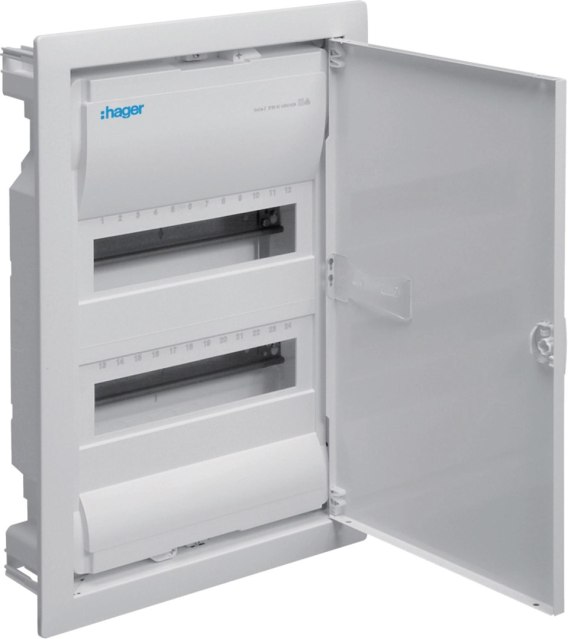 Rozdzielnica podtynkowa z drzwiami metalowymi, 2 rzędy, 24 moduły, IP30, QC, HAGER Volta VU24AT HAGER