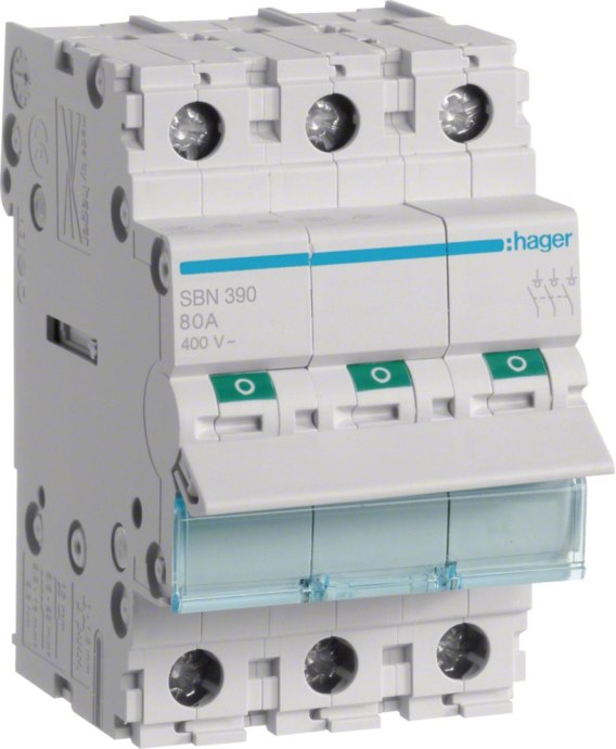 Rozłącznik izolacyjny, szer. 3 moduły. 3P, 100A HAGER SBN390 HAGER
